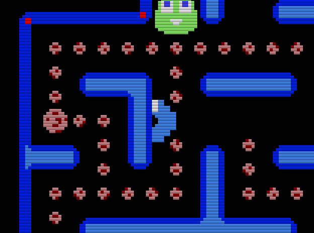 플레이어를 항상 길의 정 중앙에서만 움직이면, 의외로 간단한 처리만으로 문제는 해결되지만, 오리지널 팩맨은 코너링을 할 때는 최단거리로 움직인다든지, 60분의 1초에 1도트를 움직이는 것 같은 단순한 움직임이 아니라 몬스터를 포함하여 미묘한 속도로 움직입니다. 팩맨은 플레이어나 몬스터 이동이, 미묘한 속도로 조정되어 있는 게임이었습니다.
