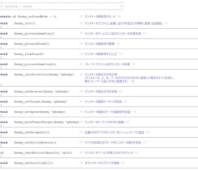 구조상, 어떤 함수에서도 액세스할 수 있지만, 기본적으로 player는 Player_함수로부터만, enemy는 Enemy_함수로부터만 조작할 수 있도록 하고 있습니다.
