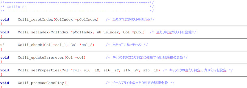 SGDK는 C++이 아니고 C언어이므로, 클래스는 사용할 수 없습니다. 하지만 클래스와 같은 구조를 상정하고, 함수를 Hard, Game, Round, Player, Enemy, Fruit, Panel, Sprite, Collision 과 같이 나누었습니다.