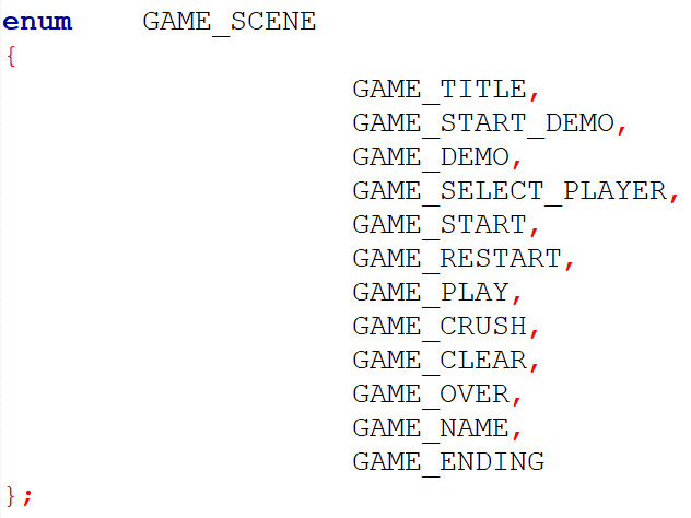 알기 쉽게, 열거형으로 게임의 씬(GAME_SCENE)을 정의하고 있습니다.