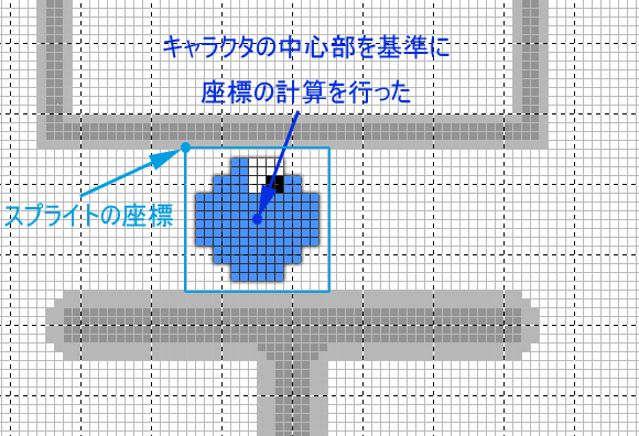 최근 일주일간, 플레이어의 조작과 맵과의 충돌 판정의 프로그래밍에 대해서 독학으로 정리하고 있습니다만, 좀처럼 제대로 되지 않고 있습니다. 가끔씩 위 그림과 같이 벽에 파고들어가서 움직이지 못하게 되거나 합니다.