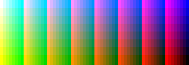 이것은 메가드라이브에서 표시가 가능한 512색의 컬러 차트입니다. 각 채널이 3비트인 RGB 색상으로 되어 있습니다.