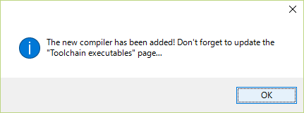 처음에 컴파일러를 고르는 화면이 나오므로, GNU GCC Compiler를 선택하고 OK를 클릭합니다.