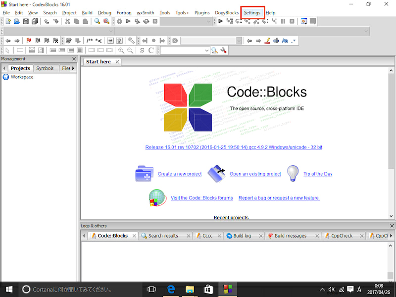 3. 셋업이 완료되면 Code::Blocks가 실행됩니다.